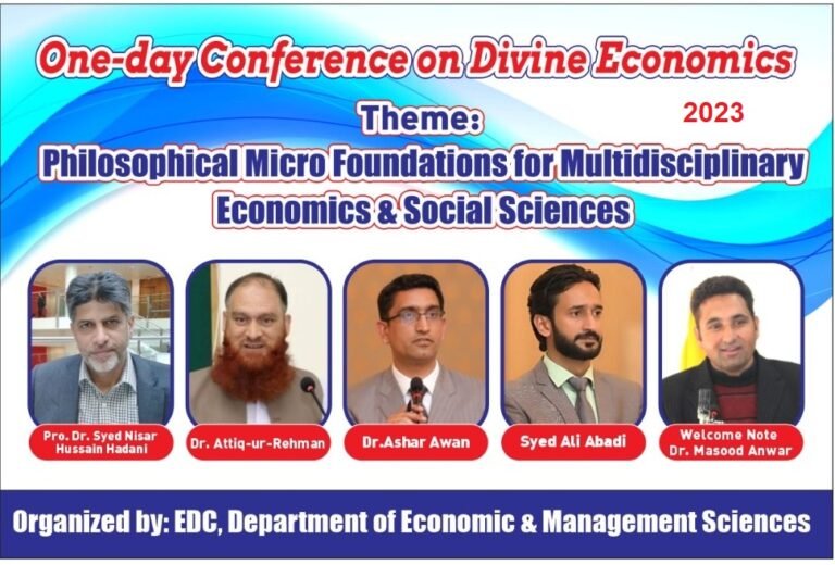 Hadi foundation Muzaffarabad is striving to produce quality work in academics to produce better and informed outcomes for the society. To achieve this objective, the chairman Hadi foundation take a vow to organize the 3rd International conference on Divine Economics in Muzaffarabad and declared the year 2022-23 as conference year. The Chairman Hadi foundation is former Director Kashmir Institute of Economics, he began his journey of economics since his early education and achieved fellowship in Post-Doc from Harvard University USA and London School of Economics UK. The chairman is not only among the country’s renowned economists but also recognized in international community. The chairman is the Founder Author of Divine Economics. Divine Economics is the study of economics and religion in each other context. It provides a comparative review of the economic assumptions and implications through the lens of values, intelligibility, faith, philosophy and religion. Having on hand, the experience of the two successful international conferences on Divine Economics (2013 & 2020). On June 20th, 2022, the Chairman in consultation with the member of the Hadi foundation announced 3rd International Conference on Divine Economics 2023 in Muzaffarabad. The Conference date was decided as 5-7 May 2023 at Peral Continental Muzaffarabad in collaboration with AJ&K Medical College Muzaffarabad,